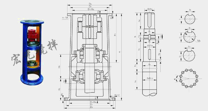 注:圖示所注“h”僅與本樣本BLD、LC-Ⅱ、DC-Ⅱ系列減速機相配,如選用其他型號或其他廠家減速機,“h”需另行計算。增高后的LSJ型機架其下部空間高度可容納205、206或207型雙端面機械密封。