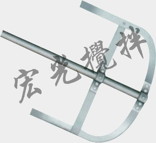 槳葉外緣形狀與攪拌槽內(nèi)壁要一致(圖5),其間僅有小的間隙,可清除附在槽壁上的粘性反應(yīng)產(chǎn)物或堆積于槽底的固體物,保持好的傳熱效果。槳葉外緣的圓周速度為 0.5~1.5m/s,可用于攪拌粘度高達(dá) 200Pa·s的牛頓型流體。